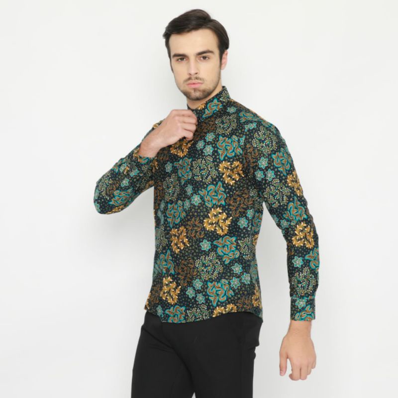 Brown Fashion Kemeja koko Slim Fit Longsleeve Pria - Kemeja batik modern untuk casual dan formal look - Multiwarna