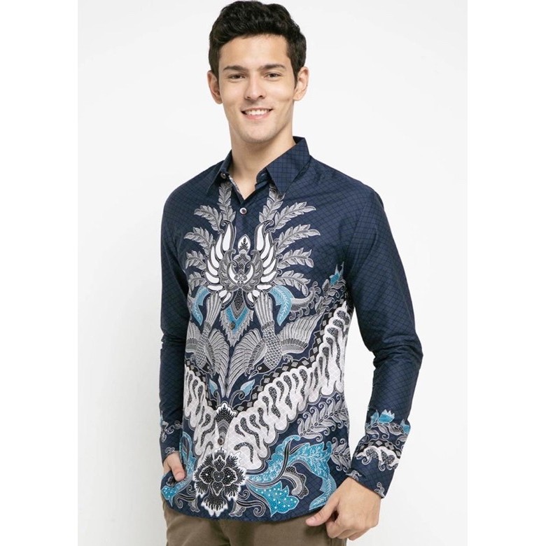 Name: Aksara Kemeja Batik Pria Lengan Panjang Slimfit Premium Biru Dongker Putih Biru Muda 726525 Cap 72