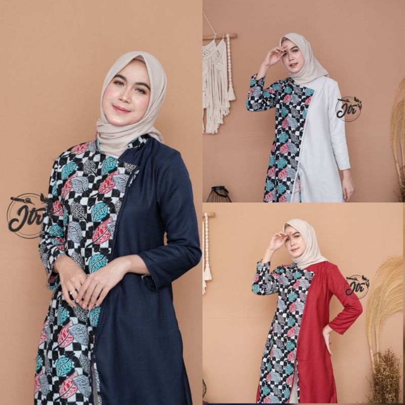 Name: Baju Batik Wanita Modern Tunik Batik Modern Batik Kombinasi Kerja Kantor Kampus