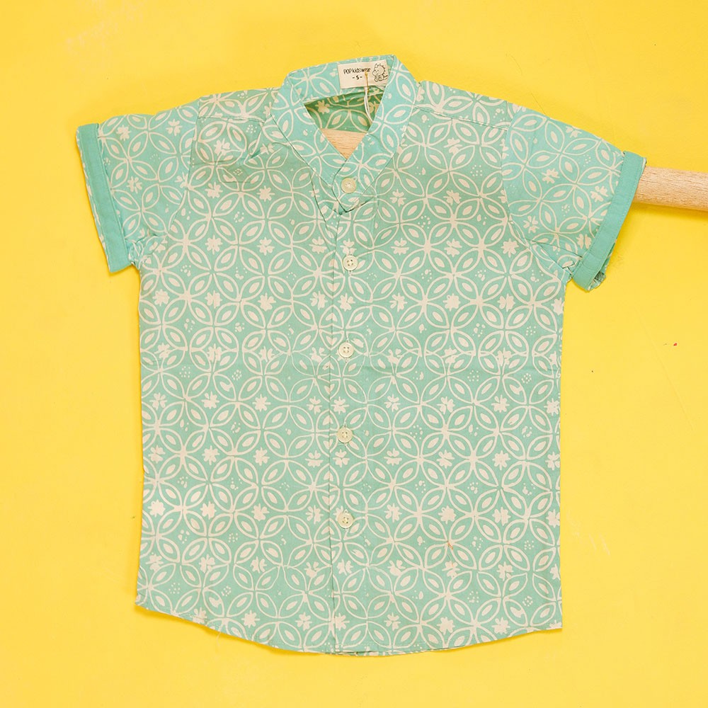 Name: Pop Kidswear Tirta Batik Shirt - Kemeja Anak Cap Katun Hijau Tosca